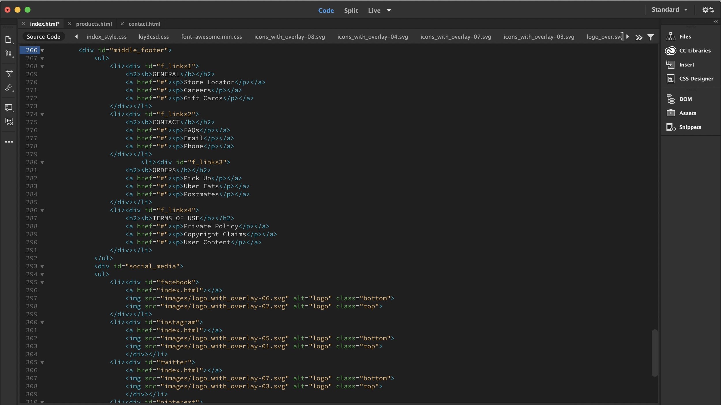 Because I had no prior knowledge of CSS, HTML, or even DreamWeaver in general, I was limited in my design. However, after countless visits to W3Schools.com, watching a multitude of coding tutorials, & connecting with classmates, I was able to catch on fairly quickly & fulfill most of my vision for the website design.