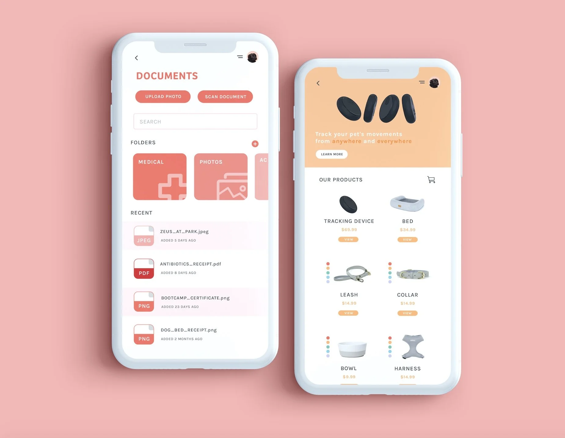 The “Documents” feature in Pawbulous allows pet owners to keep track of any type of documents for their pets. These could include receipts, photos, bills, and medical records. Shopping is also available through the app. Users can purchase the Pawbulous tracking collar to connect to the app as well as many basic pet essentials!